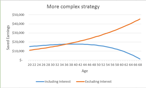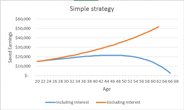 earnings or retirement date. In the simple strategy below, I did not adjust and thus get a higher retirement date. In the second strategy below, I did adjust.